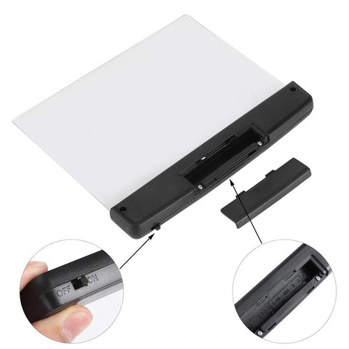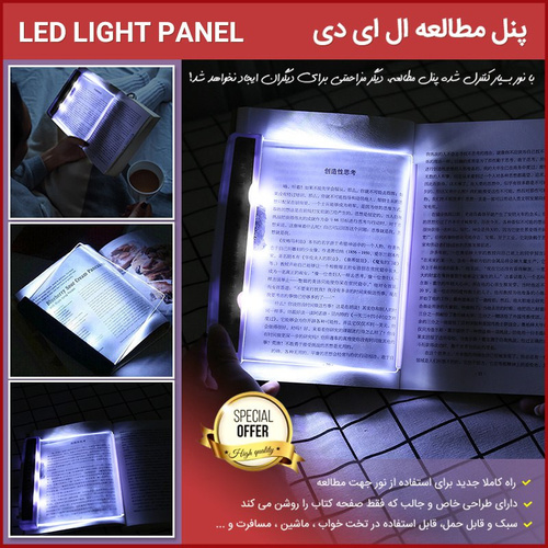 مطمئنا خیلی از افراد عادات بخصوصی دارند مثل مطالعه در آخر شب و یا درس خواندن دانش آموزان یا دانشجویان در نیمه شب. خیلی از اوقات نور حاصل از روشن نمودن چراغ برای دیگران ایجاد مزاحمت کرده و باعث سلب آسایش خواهد شد.ما به شما پنل مطالعه کتاب LED رو پیشنهاد می کنیم.این محصول جالب و کاربردی به گونه ای طراحی گردیده که نور آن هیچ آسیبی به چشم شما وارد نخواهد کرد اگر دوست دارید در هنگام شب مطالعه نمایید و یازمانی که مطالعه میکنید احساس میکنید نور محیط کم است پس چراغ مطالعه از ضروری ترین وسایلی است که هنگام مطالعه باید به همراه داشته باشید. چراغ مطالعه بهتر است نور سفیدباشد تا در دراز مدت سبب خستگی چشم نشود. خرید پنل مطالعه ال ای دی مخصوص کسانی میباشد که دوست دارند همیشه بدون این که چشماشنان خسته شوند به مطالعه در شب بپردازند چراغ مطالعه ورقه ای با 3 عدد باطری قلمی کار میکند که به سادگی نوردهی این دستگاه قابل تنظیم توسط خود شخص میباشد که کار با این چراغ مطالعه شیشه ای بسیار اسان کرده است پنل مطالعه کتابی هم برای انجام مطالعه در هنگام تاریکی و هم به عنوان چراغ خواب برای استفاده دانشجویان در سفر داخل ماشین ، استفاده اساتید معلمان مناسب خواهد بود پنل مطالعه پنل مطالعه ال ای دی – Light Panel دارای پلاستیکی تخت سفاف که فقط صفحه کتاب را روشن می کند دیگر نگران آزار اطرافیان در هنگام استراحت نباشید چون فقط نور روی صفحه مطالعه شماست.